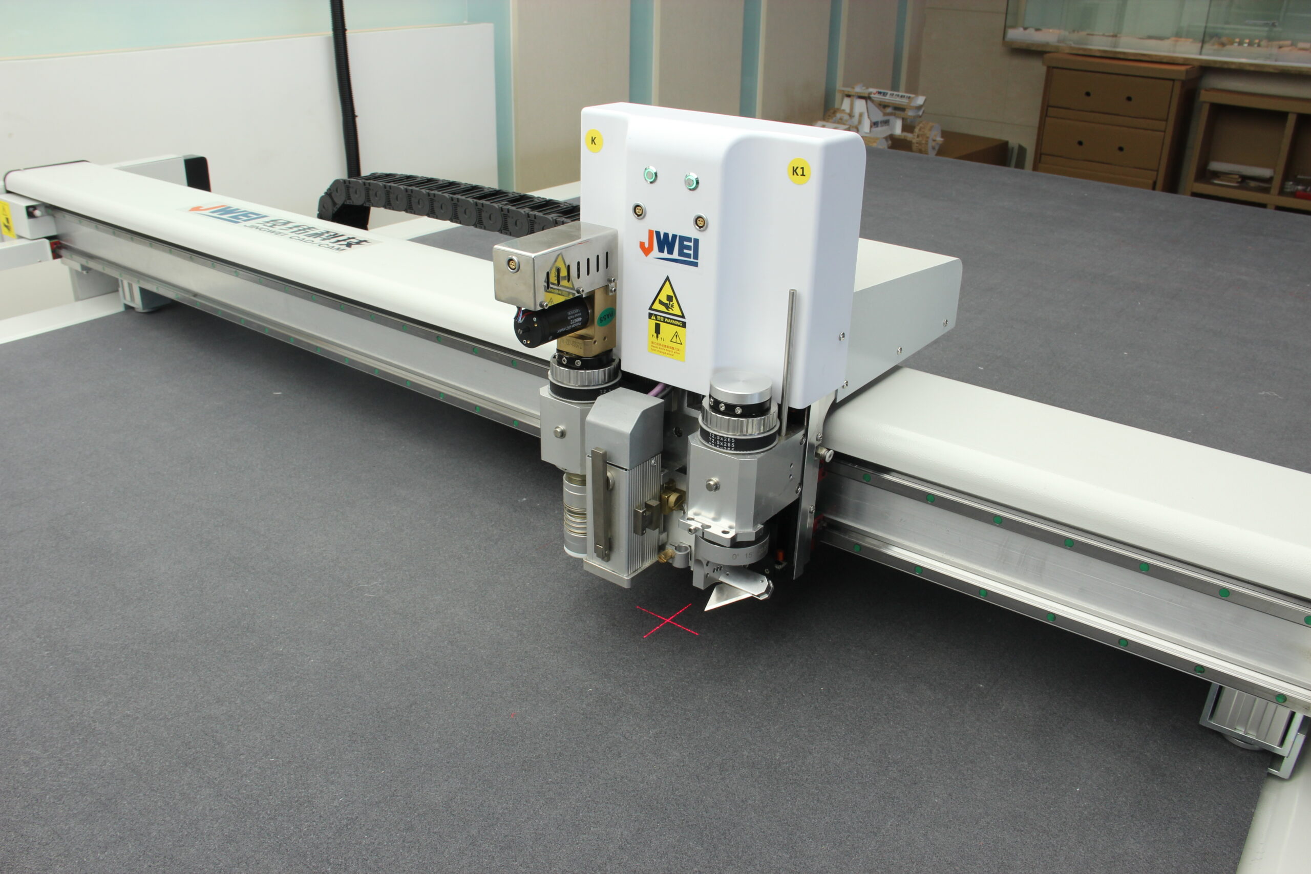 91香蕉视频APPkt板切割机的机头可插拔式,也就是可灵活进行安装各种工具,如用于包装行业的切割、灰板开槽、卡纸开槽、瓦楞切割、压痕等功能,今天给大家演示下91香蕉视频APPkt板切割机装⼑⼯具⼑⽚安装步骤。