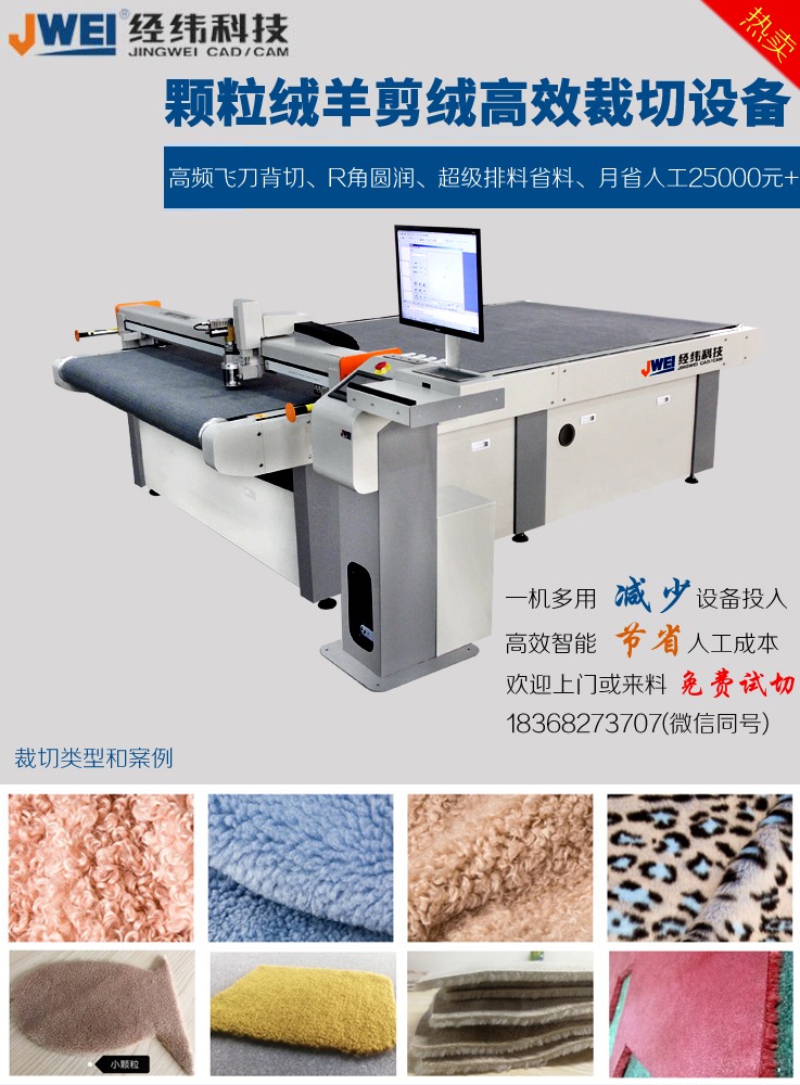 ● 为颗粒绒、羊剪绒等长毛绒面料裁剪而专门设计,高效裁剪不伤毛;
